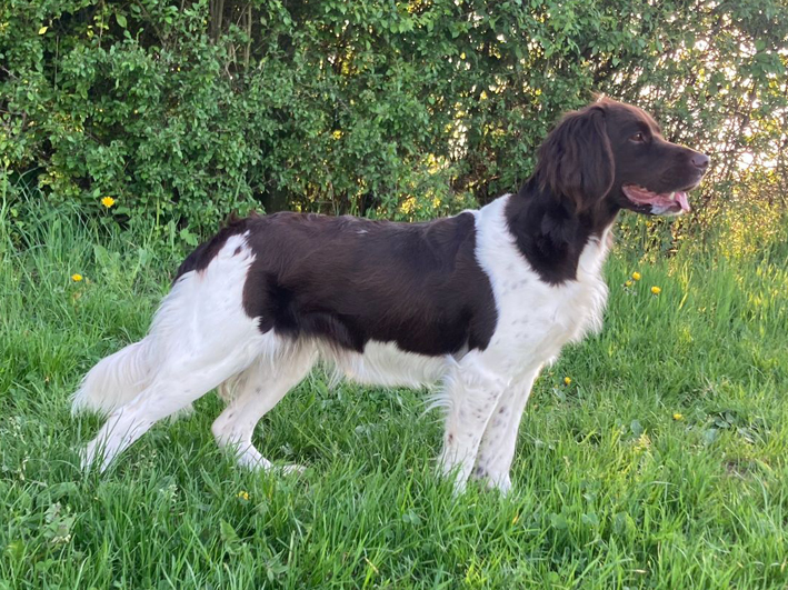 Motte von der Brembecke wurde Anfang April von Juri II aus der Wolfskammer gedeckt (Bild oben, Zuchtbuch-Nr.: 14-0569, DGStB.Nr. 68767). Juri ist ein 5-jähriger braun-weißer Rüde, der mit Verstand jagd und sehr gute Zuchtwerte mitbringt. Leistungsprüfungen: BTR, SWII, VJP 74 P., HZP LE=10 175 P., VGP 330 P. 1.Pr. ÜF. Zuchtschauen und weitere Werte: Spl, HN, SG-V-55, IZs SG-SG-55, HQ=1.01, HD-A, Ureter untersucht . Motte steht in der Ausbildung zur VGP, ist aktiv und erfolgreich im Einsatz bei Nachsuchen auf Schwarzwild, liebt es aber auch durchaus gemütlich. Sie sieht dem Wurf zusammen mit ihrem Chef Heinz gelassen entgegen. |